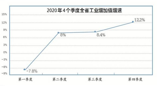 2020年4個(gè)季度全省工業(yè)增加值增速分別為-7.8%、8%、8.4%與12.2%,這便是最好的例證。