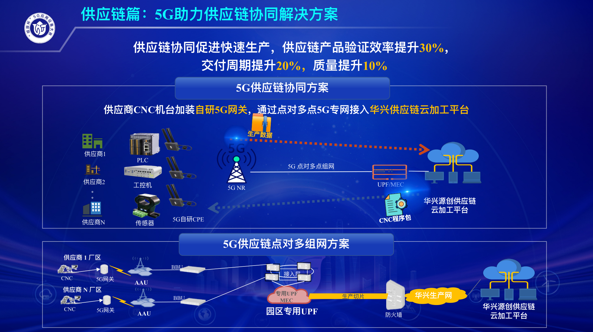 蘇州華興源創(chuàng)科技股份有限公司、蘇州聯(lián)通打造的一個5G 超級數(shù)字工廠項目,獲得二等獎。項目團隊成員、蘇州聯(lián)通技術支撐經(jīng)理杜聰介紹,該項目以5G隨行專網(wǎng)、5G虛擬專網(wǎng)、5G混合專網(wǎng)的“三網(wǎng)融合”,達成跨廠區(qū)、跨企業(yè)、跨地域數(shù)據(jù)融通的目標,為研發(fā)協(xié)同、供應鏈協(xié)同創(chuàng)造條件。分布在5個城市的研發(fā)中心工作人員,可以隨時隨地接入研發(fā)內(nèi)網(wǎng),無需來回奔波,為檢測技術彎道超車節(jié)約寶貴時間。供應商的生產(chǎn)、設備狀態(tài)等數(shù)據(jù),可以通過5G專網(wǎng)上傳到華興的供應鏈云加工平臺,靈活接入的同時保障核心生產(chǎn)數(shù)據(jù)的安全可靠。“目前,288家供應商中,有39家已接入這個平臺。比賽時評委問,供應商為什么愿意接入平臺?”杜聰說,“我們的答案是,供應商中有不少中小企業(yè),它們免費使用這個平臺,不僅節(jié)省成本,還能保證訂單量。對5G的應用,給了華興與供應商共同成長的機會?!?/p>