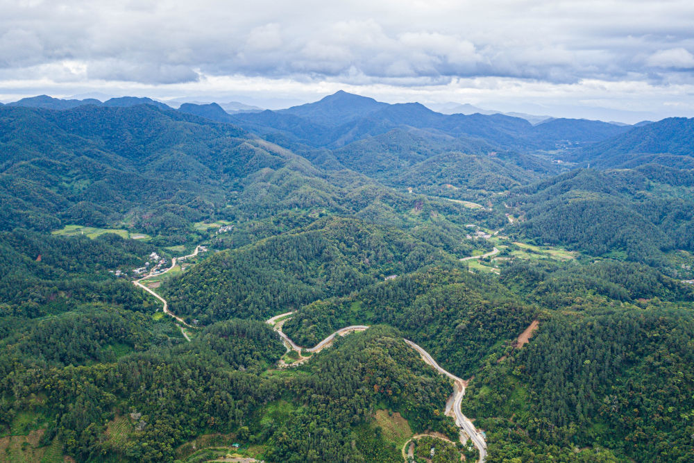 這是2021年4月25日拍攝的廣西桂林市全州縣才灣鎮(zhèn)毛竹山村(無人機(jī)照片)。新華社記者 曹祎銘 攝