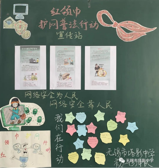 作為紅領(lǐng)巾護(hù)網(wǎng)普法行動試點(diǎn)學(xué)校,無錫市塔影中學(xué)正在結(jié)合學(xué)校實(shí)際情況,以“全面宣傳、廣泛調(diào)查、精準(zhǔn)規(guī)范”為目標(biāo),開展青少年護(hù)網(wǎng)普法行動。邀請無錫市公安局網(wǎng)絡(luò)安全保衛(wèi)支隊(duì)二大隊(duì)的江浩同志,介紹宣講典型案例。同時(shí),充分利用教室內(nèi)團(tuán)隊(duì)角、黑板報(bào)、校園宣傳板等陣地開辟網(wǎng)安園地專欄,收集展示紅領(lǐng)巾們的護(hù)網(wǎng)發(fā)言,爭做“網(wǎng)安”宣傳者與踐行者。