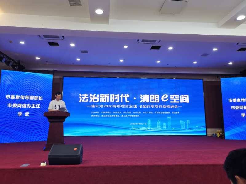 8月21日上午,連云港市委網(wǎng)信辦聯(lián)合市教育局、市公安局、市司法局、市文廣旅局、市市場(chǎng)監(jiān)督管理局、市通管辦共同舉辦“法治新時(shí)代·清朗e空間 連云港2020網(wǎng)絡(luò)綜合治理·e起行”專項(xiàng)行動(dòng)推進(jìn)會(huì)。市委宣傳部副部長、市委網(wǎng)信辦主任李武致辭。
