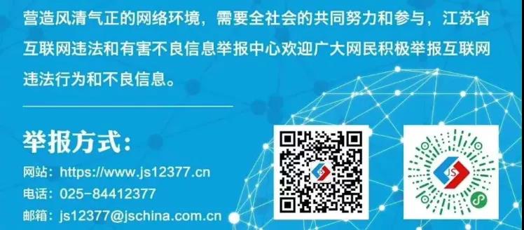 專項(xiàng)行動(dòng)期間,將在江蘇省互聯(lián)網(wǎng)違法和有害不良信息舉報(bào)平臺(tái)(www.js12377.cn)開(kāi)通惡意營(yíng)銷賬號(hào)專項(xiàng)舉報(bào)通道,鼓勵(lì)全社會(huì)積極參與,共建共治清朗網(wǎng)絡(luò)空間。