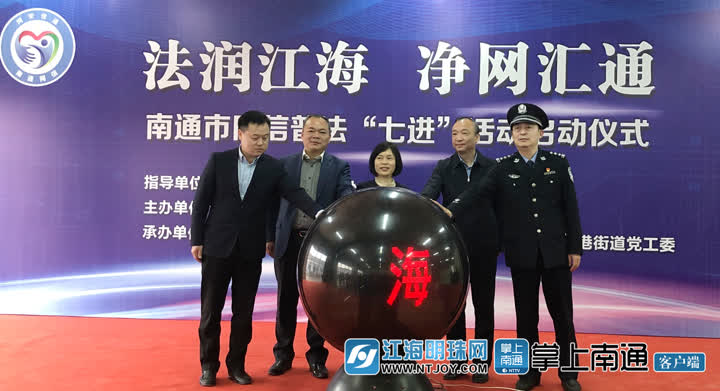 省委網(wǎng)信辦網(wǎng)管處處長鄭琰瀅,南通市委宣傳部副部長、網(wǎng)信辦主任俞雷,崇川區(qū)委常委、宣傳部長張偉明,市公安局網(wǎng)安支隊(duì)支隊(duì)長張建,任港街道黨委書記高峰共同啟動(dòng)“法潤江海凈網(wǎng)匯通”——南通市網(wǎng)信普法“七進(jìn)”活動(dòng)。
