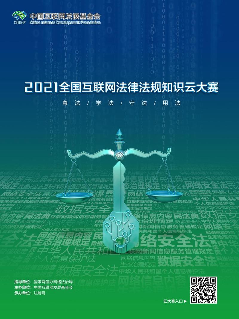 由國家網(wǎng)信辦網(wǎng)絡(luò)法治局指導、中國互聯(lián)網(wǎng)發(fā)展基金會主辦、法制網(wǎng)承辦的“2021全國互聯(lián)網(wǎng)法律法規(guī)知識云大賽”將于11月23日正式啟動。本次競賽活動歷時一個月,全國互聯(lián)網(wǎng)從業(yè)人員和網(wǎng)民可通過關(guān)注“法制網(wǎng)”微信公眾號參與答題。云大賽期間,每天隨機抽取獲獎者給予獎勵,云大賽結(jié)束后還將進行總結(jié)發(fā)布活動。
