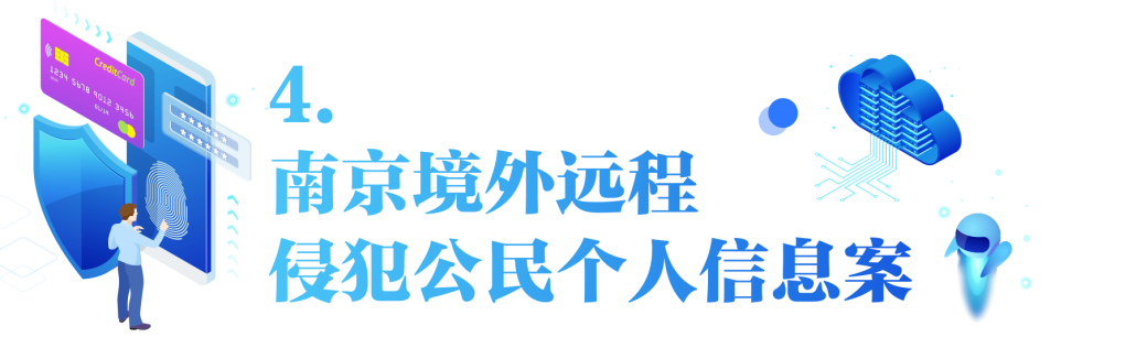 2020年5月,南京公安機(jī)關(guān)成功打掉一個(gè)以境外人員為首,行業(yè)“內(nèi)鬼”參與的侵犯公民個(gè)人信息團(tuán)伙。案件發(fā)現(xiàn),受境外人員高利蠱惑,部分行業(yè)“內(nèi)鬼”在單位內(nèi)部網(wǎng)絡(luò)架設(shè)控制設(shè)備,實(shí)現(xiàn)境外遠(yuǎn)程查詢下載公民個(gè)人信息。案件共抓獲嫌疑人19名,繳獲各類(lèi)作案設(shè)備52臺(tái),清除各行業(yè)違規(guī)使用設(shè)備200余部,該團(tuán)伙侵犯公民個(gè)人信息8萬(wàn)余條,非法獲利500余萬(wàn)。此案?jìng)赊k及時(shí)消除了隱藏于國(guó)家內(nèi)部網(wǎng)絡(luò)重大安全隱患,有力保護(hù)公民個(gè)人信息安全。