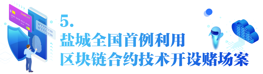 2020年12月,鹽城公安機(jī)關(guān)成功打掉一個(gè)利用區(qū)塊鏈合約技術(shù)開(kāi)設(shè)賭場(chǎng)的網(wǎng)絡(luò)平臺(tái),抓獲犯罪嫌疑人13名,查扣涉案虛擬幣130余萬(wàn)個(gè),價(jià)值2600余萬(wàn)元。查明自2018年6月以來(lái),犯罪嫌疑人胡某宇伙同劉某功、謝某非組織11名技術(shù)人員,在境外某區(qū)塊鏈合約技術(shù)平臺(tái)上開(kāi)設(shè)網(wǎng)絡(luò)賭場(chǎng),參賭人員7.3萬(wàn)余人,交易流水80億元,違法所得6000余萬(wàn)元,涉及境內(nèi)外多個(gè)國(guó)家和地區(qū)。此案是全國(guó)首例利用區(qū)塊鏈合約技術(shù)開(kāi)設(shè)賭場(chǎng)案,成功偵辦在全國(guó)首開(kāi)先河。