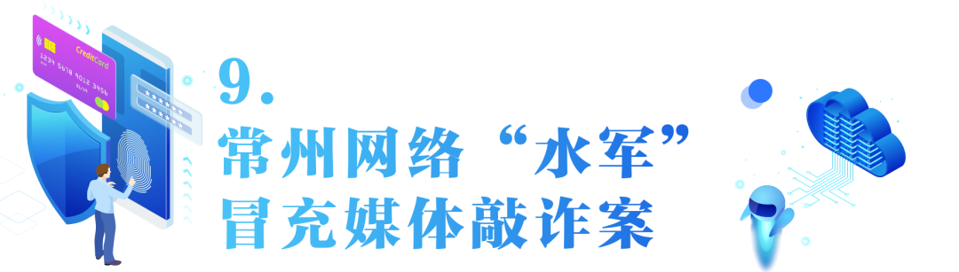 2020年1月,常州公安機(jī)關(guān)打掉一個(gè)網(wǎng)絡(luò)“水軍”團(tuán)伙,抓獲犯罪嫌疑人18名,扣押作案設(shè)備39部,繳獲虛假證件50余本,關(guān)停非法“水軍”網(wǎng)站20家,依法取締“人民日?qǐng)?bào)社分部”等非法新聞機(jī)構(gòu)5個(gè)。查明自2018年11月以來(lái),該團(tuán)伙成立南京紫悅云文化傳媒有限公司,租用境外服務(wù)器,冒充人民日?qǐng)?bào)等新聞媒體,開(kāi)設(shè)《人民日?qǐng)?bào)社中國(guó)零距離網(wǎng)》等虛假網(wǎng)站,在江蘇、安徽、上海等地,以曝光環(huán)保、拆遷、執(zhí)法不規(guī)范等問(wèn)題為由,向相關(guān)單位索要錢(qián)財(cái)。該團(tuán)伙累計(jì)40余起,敲詐金額達(dá)200余萬(wàn)元。2020年8月11日,常州市武進(jìn)區(qū)人民法院依法對(duì)主犯張某明等12人分別判處七個(gè)月至五年不等有期徒刑并處罰金。