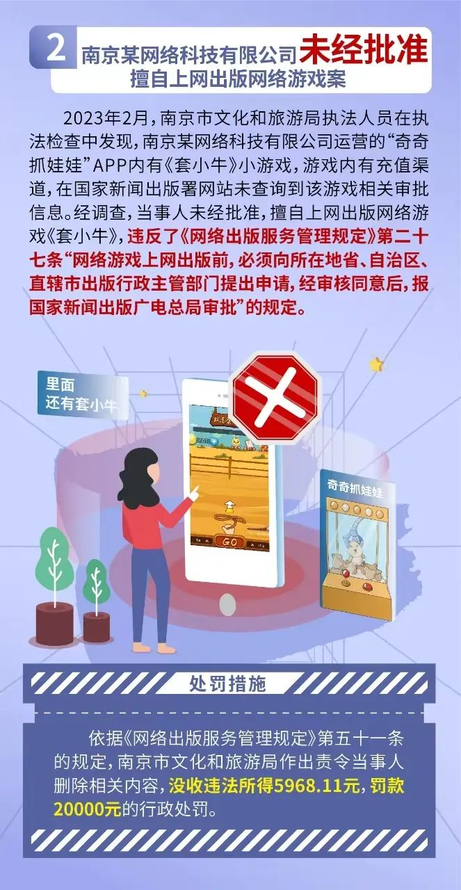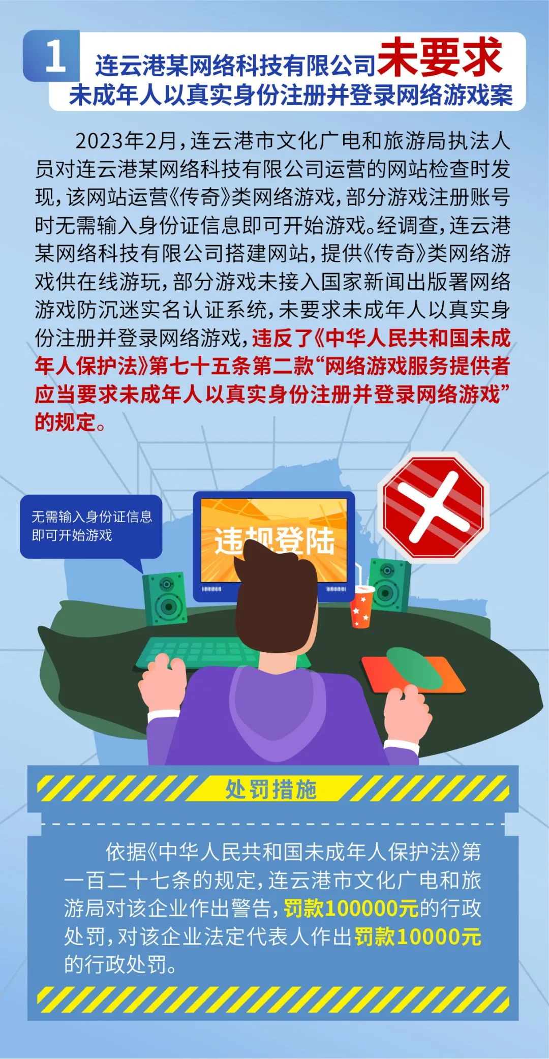 江蘇省文化和旅游廳、江蘇省新聞出版局日前聯(lián)合公布5起涉未成年人網(wǎng)絡(luò)游戲典型案例,包括未經(jīng)批準擅自上網(wǎng)出版游戲、未要求未成年人以真實身份注冊游戲等。以此警示網(wǎng)絡(luò)游戲企業(yè)和網(wǎng)絡(luò)游戲從業(yè)者引以為戒、守法經(jīng)營。同時,也通過這些警示案例提醒網(wǎng)民,健康上網(wǎng),安全“沖浪”。