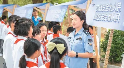 江蘇省海安經(jīng)濟開發(fā)區(qū)實驗小學校園內(nèi),民警向?qū)W生講解未成年人網(wǎng)絡保護知識。翟慧勇攝(人民視覺)